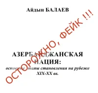 Нами в сети Интернет была обнаружена книга «доктора исторических (сказочных) наук, ведущего научного сотрудника Института археологии и этнографии НАН Азербайджана Айдына Балаева «Азербайджанская нация: основные этапы становления на рубеже XIX-XX вв.».