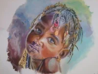 И второй путь — мой.» — рассказывает Маргарит. «В школе я любила рисовать простым карандашом. Меня вдохновлял ренесанс, российские классики, передвижники. Мне нравились разные жанры, больше всех -портрет и анималистика. Так, семь лет назад, я начала создавать первые работы. В основном, это были кошки и собаки. Делала я это лежа, так как могла сидеть несколько минут. Покупали знакомые, желая помочь. А мне уже тогда так хотелось писать портреты. И тут помогла судьбоносная встреча. Уже и не помню, как познакомилась с американским мастером мировой акварели Диланом Скоттом Пирсом. Иногда я спрашивала его совета. Однажды увидела очередной потрясающий потрет. Написала, что была бы счастлива, если бы я хоть немного также хорошо рисовала. На что он ответил, что у меня хорошие работы, и практика — это все, что мне нужно. Вот что значит искренняя поддержка Мастера. И после этого я написала одну из лучших своих работ. Портрет африканской девочки «Девочка красоты лунного света». Кстати, любовь к Африке у нас тоже общая.